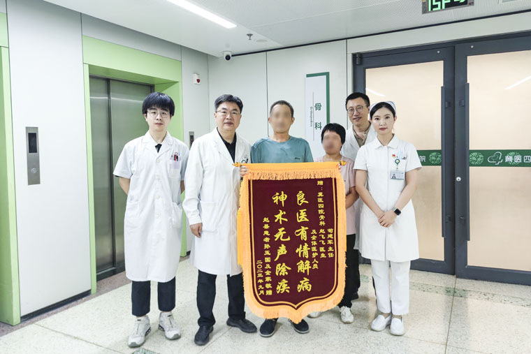 为彻底解决感染灶问题,骨科医务人员分别为患者进行超声引导下右大腿皮下局限性积液穿刺引流置管术、右大腿坏死组织清创引流术,经过近1个月的努力救治,患者身上的各种管道顺利拔除,生活回归自理,具备出院条件,这就出现了文章开头的温馨一幕。